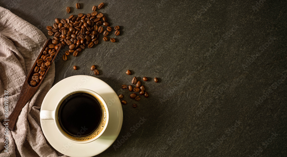 Top View Above Of Black Hot Coffee For Morning With Milk Foam For Morning Menu In